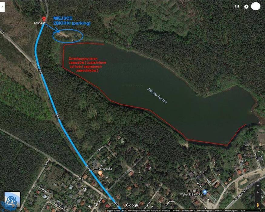 Miejsce zbiórki, oraz przewidywany teren zawodów przedstawiamy na mapce poniżej.