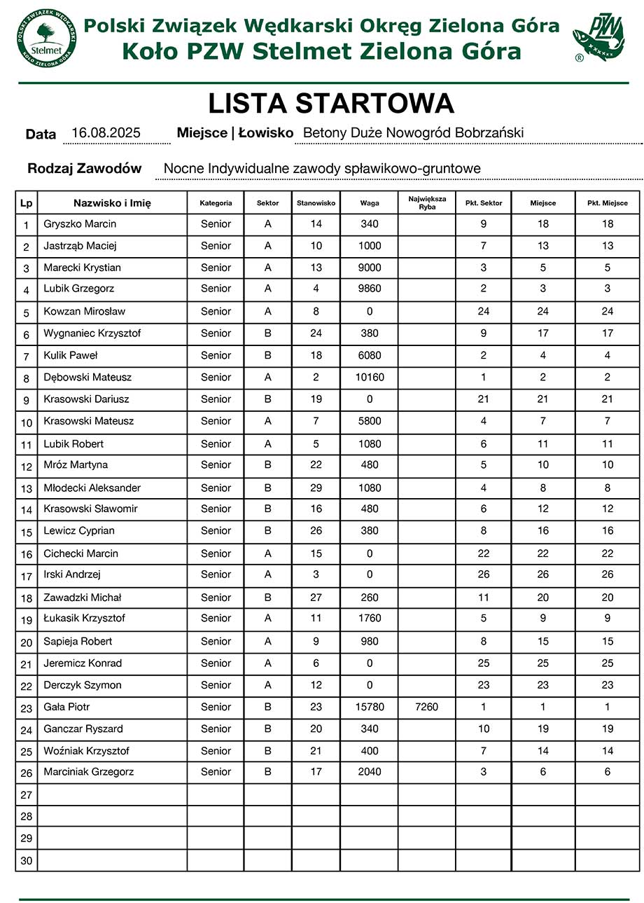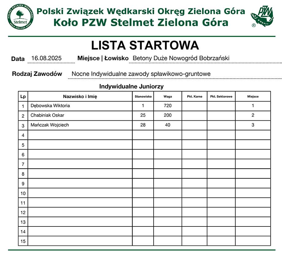PZW Stelmet - Nocne Zawody Wapna Jordanowo – 21-22.06.2025
